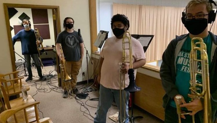 This is the new normal for the Concordia Jazz Ensemble. They are using the recording studio to produce music this semester rather than giving concerts due to COVID-19.