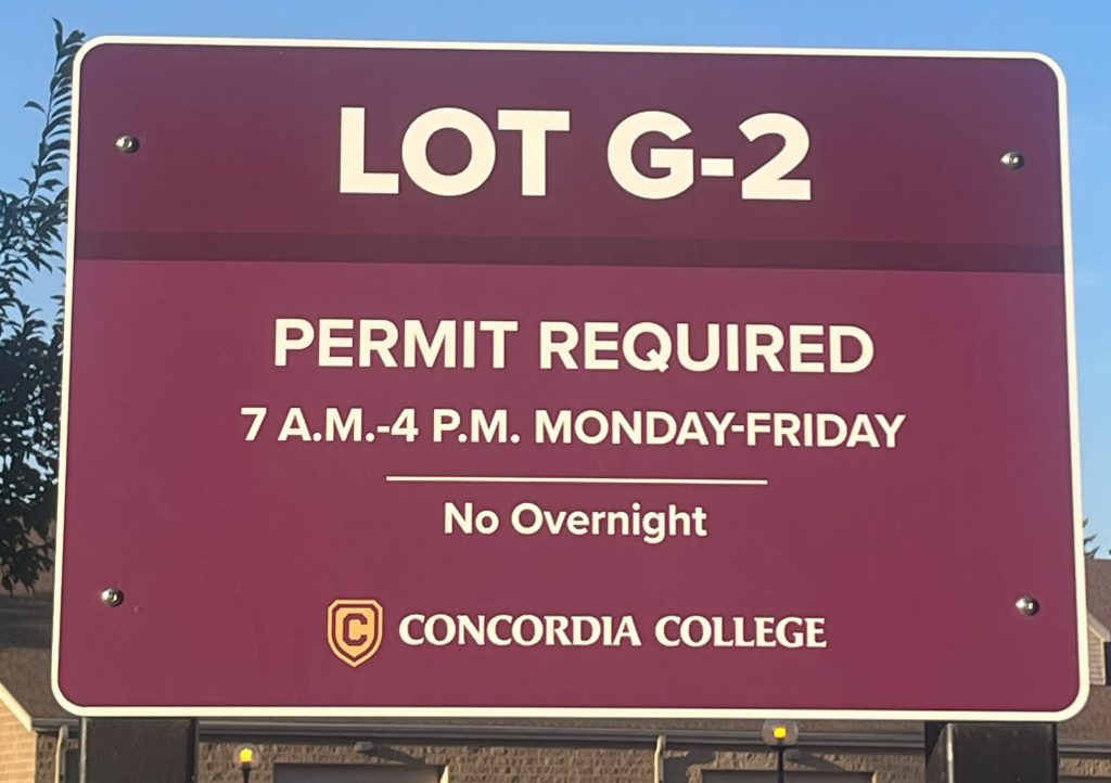 According to Audra Freeman, Concordia Moorhead’s system and security coordinator, “There are multiple parking lots on campus that pertain to each permit; just be aware of the signage within the lots you are trying to park.” For example, S permits may only be used in S lots, while G permits are reserved for G lots for employees and off-campus students only.