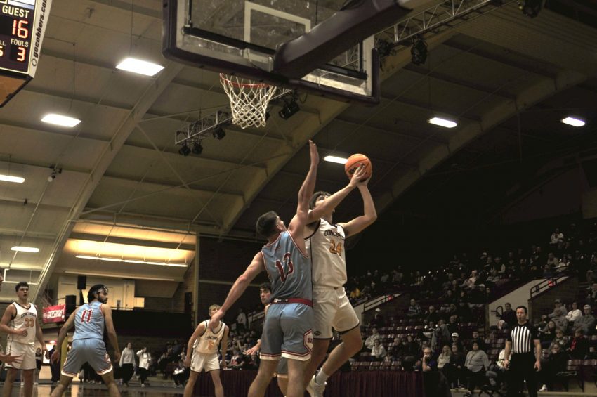 Whether it was a stroke of luck or sweaty palms, the shot is missed, this time rebounded by Concordia Senior Forward Jackson Loge who passes ahead to Sophomore Guard Justin Courneya who swings it full court to Schell for a heavily contested transition layup for the win.